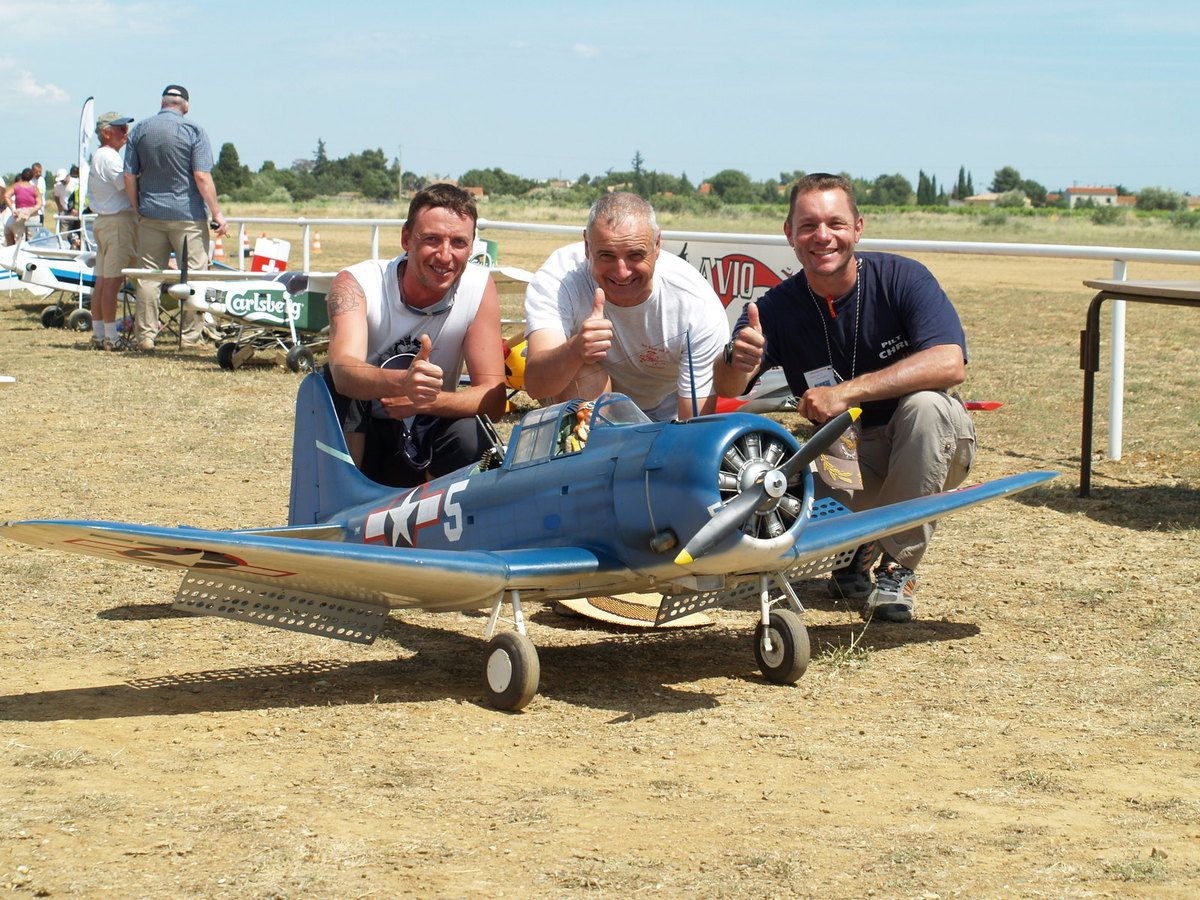 Alain Ronk, moi au milieu, Pierre Ferrand.... et devant un espèce de tagazou bizarre !! Le magnifique Howard Ike. Env. 2.26m / 11,5 Kg / Titan 62cc / Menz 24X8.